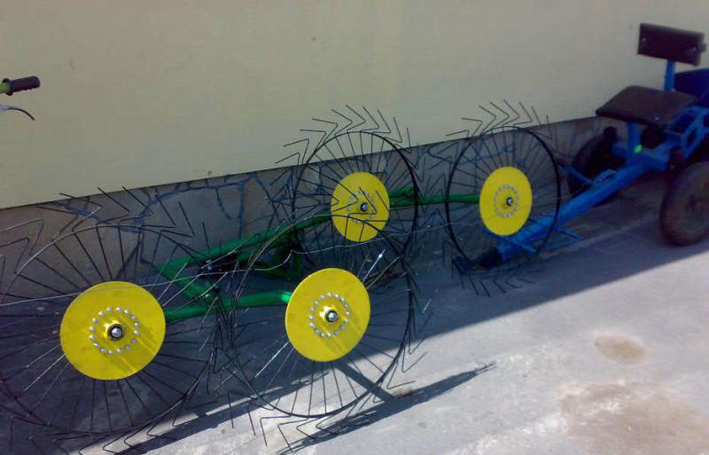Страна-производитель: Турция Состояние: Новое Тип тракторных грабель: Грабли-ворошилки Цена договорная Турецкие грабли-ворошилки, цена указана за 4-х колесную модель,осуществляют сгребание в валки проявленной травы из прокосов, ворошения и оборачивания. Изготовлены из высокопрочной стали, имеют утолщенную раму и длинные толстые спицы. К раме на подшипниках крепятся 4 колеса диаметром - 142 см.