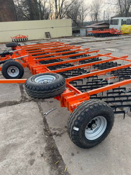 Борона зубовая двухследная БЗУ-Агро/2-15 - это сельскохозяйственная машина для поверхностной обработки почвы, предназначенная для дробления глыб, выравнивания поля, борьбы с сорняками (уничтожение всходов и вычесывание), закрытия влаги, заделки удобрений, а также для довсходового и послевсходового боронования зерновых и технических культур. "Двухследная" означает, что она имеет два ряда зубчатых секций, а "15" - это, вероятно, ширина захвата (15 метров) или другая характеристика, связанная с размерами.