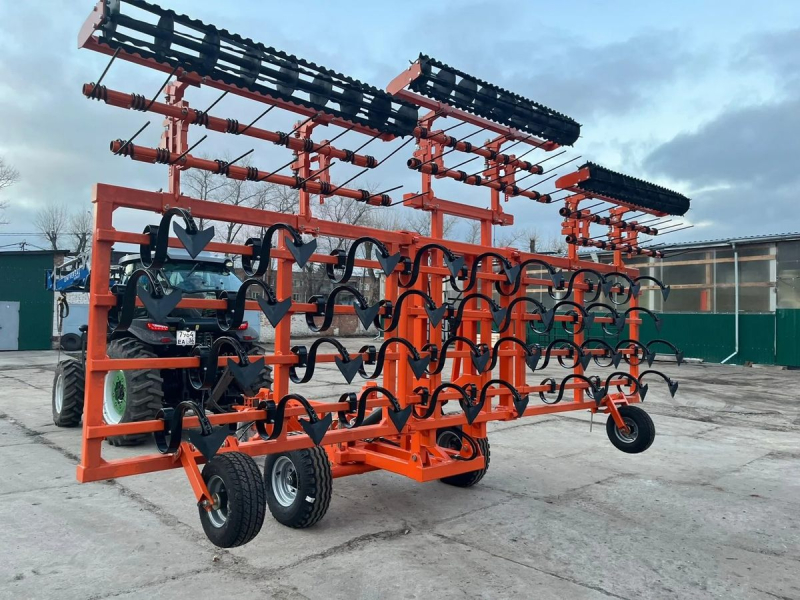 Комплектация: Обычно оснащен S-образными стойками (лапами), гребенками и катками для выравнивания.