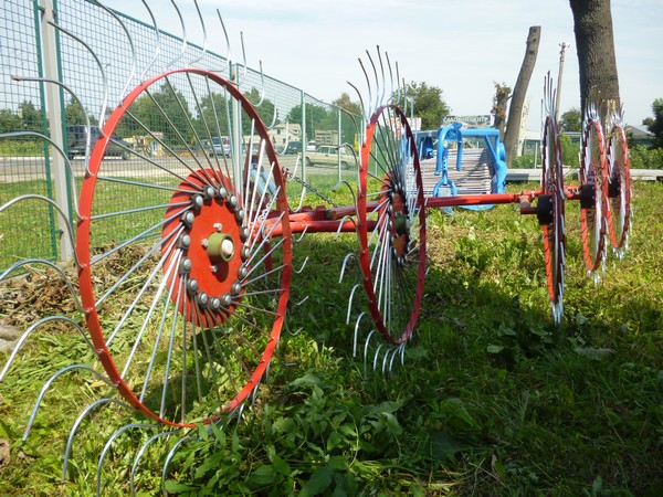 Предлагаем купить тракторные грабли Солнышко на 4 ротора по выгодной цене. Представленная сельхозтехника производится в Польше. Разработано сельхозоборудование для механизации сенозаготовительных работ. Осуществляет ворошение, сгребание, валкование кормовых трав с различной влажностью. Комплектуется 4-я рабочими колесами, которые имеют захват - 180 см (грабление) и 280 см (распушивание). Производительность сельхозмашины составляет 9000 кв.м/ч при гребке и 12000 кв.м/ч при ворошении. Агротехническая скорость не превышает 10 км/ч. Вес навесного сельхозоборудования равен 130 кг.