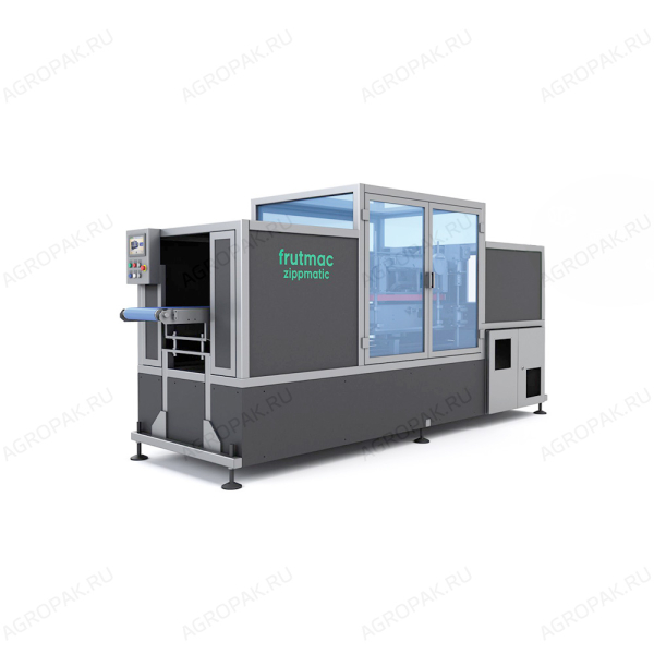 Zippmatic - это полуавтоматическая упаковочная машина, которая быстро и легко помещает яблоки в готовые картонные лотки за счет сцепления боковых створок контейнера сверху, закрывая его между разливочной и ценниковой машинами.